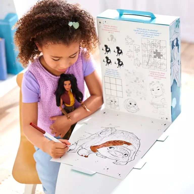 ''I've seen people freak out over a dragon gem. Could you imagine how they'd react if they saw a real dragon?'' asked Raya. For the Disney Story Doll assortment, our beloved Princess Dolls are enhanced by an additional outfit and accessories to more fully play out the character's story. Recreate the film or imagine a brand new adventure! The plastic free, reusable, and recyclable packaging folds out into a play area stage, and features a coloring and activity sheet in back. With her layered costume and long black hair, our Raya classic doll will be a trusted playtime companion. Includes Ongies figurine.