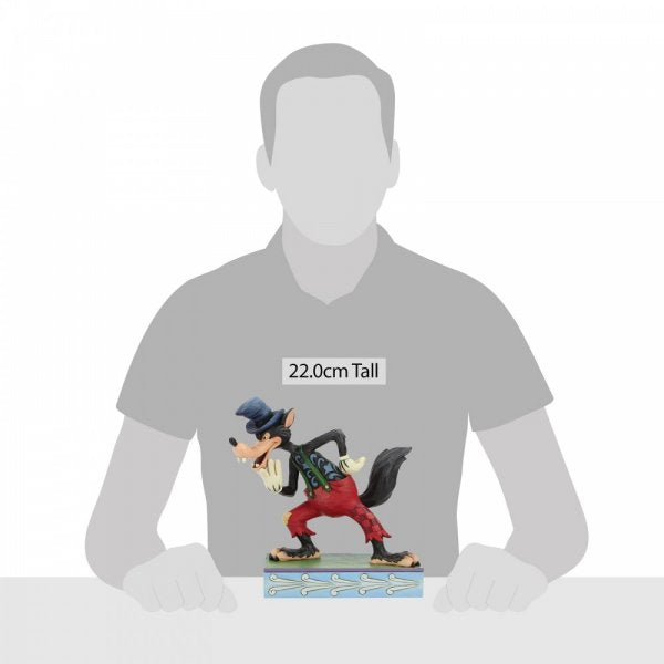 The Big Bad Wolf scratches his chin contemplating which little pig’s house he should blow down first. Looking quite strapping in his suspenders and hat with Jim Shore rosemaling design, this big bad wolf will be huffing and puffing soon enough. Unique variations should be expected as this product is hand painted. Packed in a branded gift box. Not a toy or children’s product. Intended for adults only.